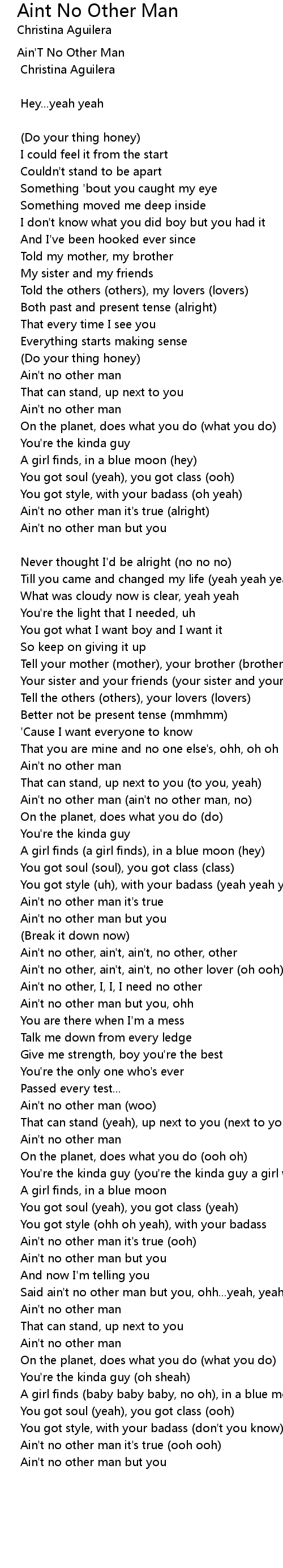 Ain't no other man (ain't no other man, no) |