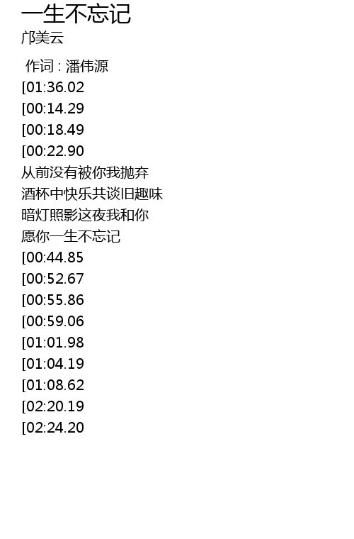 | [02:32.58][02:24.20][01:17.27] | 莫要把今宵忘记 |