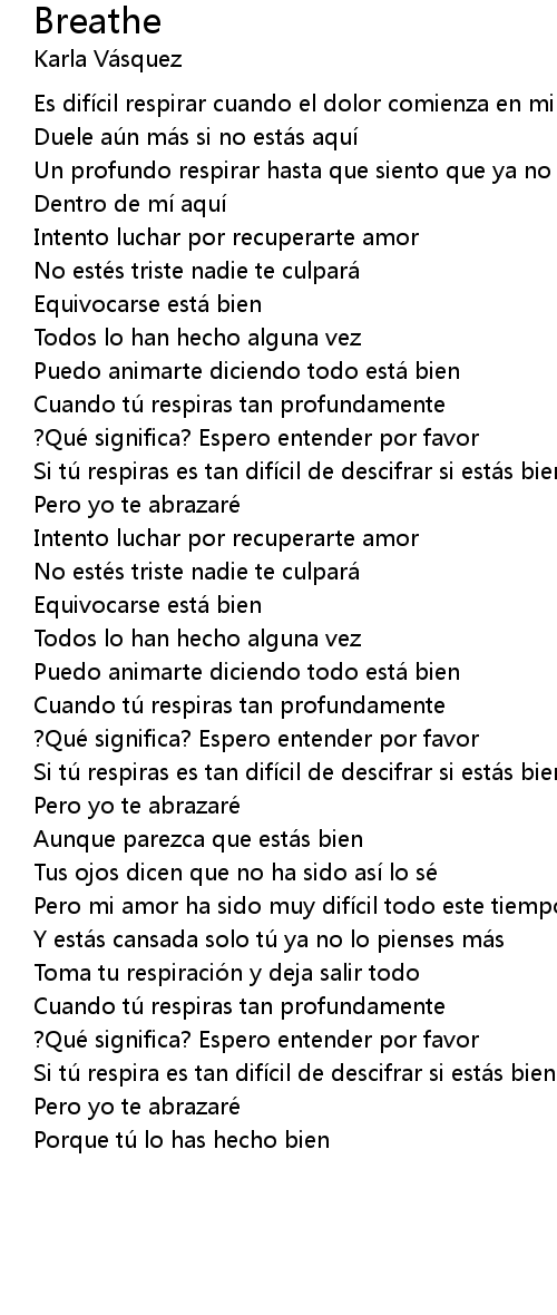 | [03:56.37] | Si tú respira es tan difícil de descifrar si estás bien |