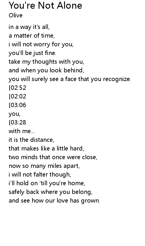 you're not alone, i'll wait till the end of time, |