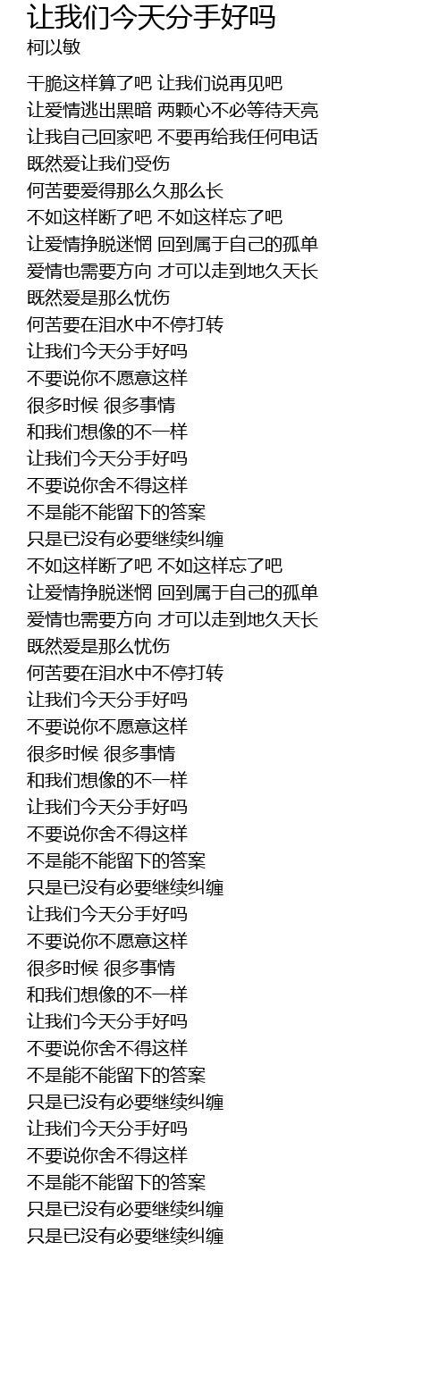 让我们今天分手好吗 rang wo men jin tian fen shou hao ma Lyrics