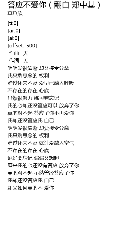 | [01:02.77] | zhen de dui bu qi da ying le ni bu zai ai ni |