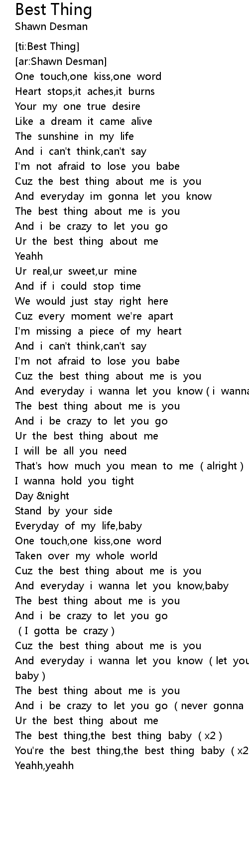 | [02:47.307] | Ur the best thing about me |