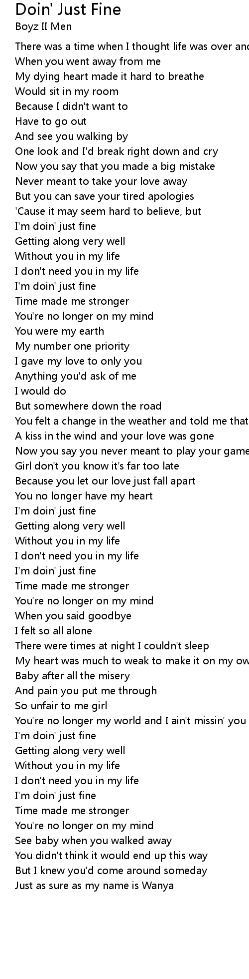 I'm doin' just fine |