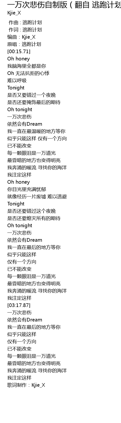 | Song | 一万次悲伤自制版(翻自 逃跑计划) |