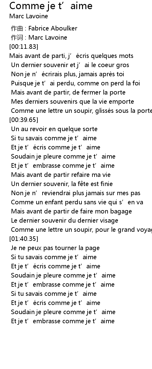 | [02:21.54] | Et je t'é cris comme je t' aime |