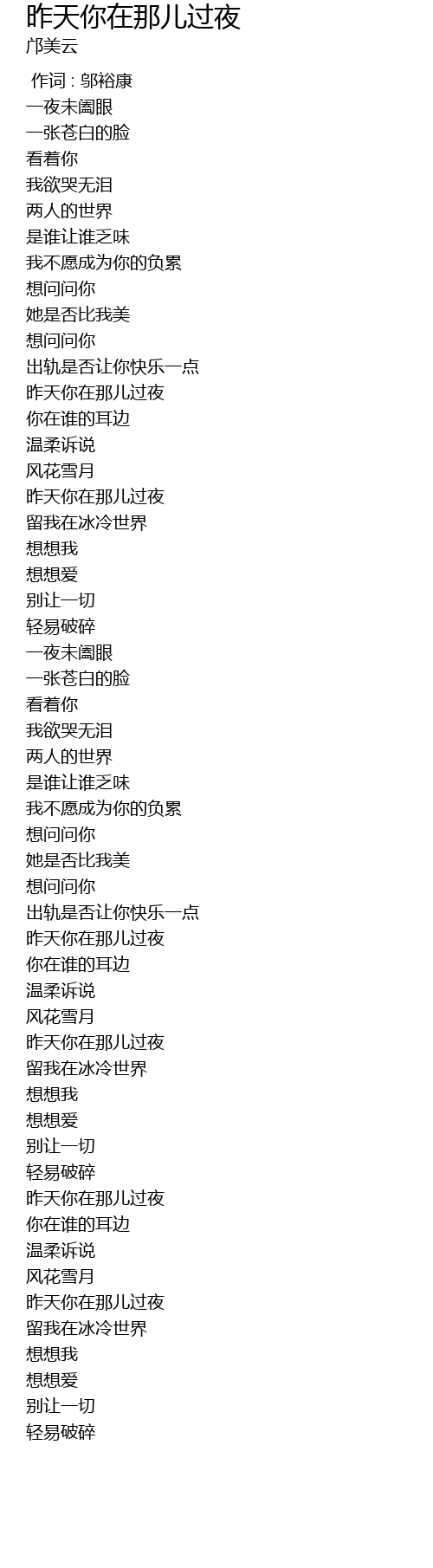 | [03:52.25] | zuo tian ni zai na r guo ye |