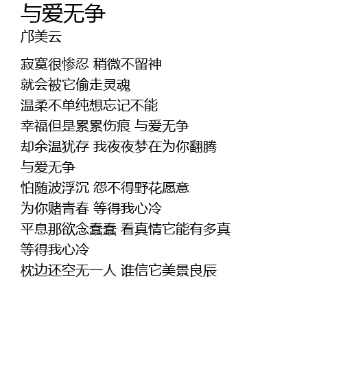 | [00:42.03] | 幸福但是累累伤痕 与爱无争 |
