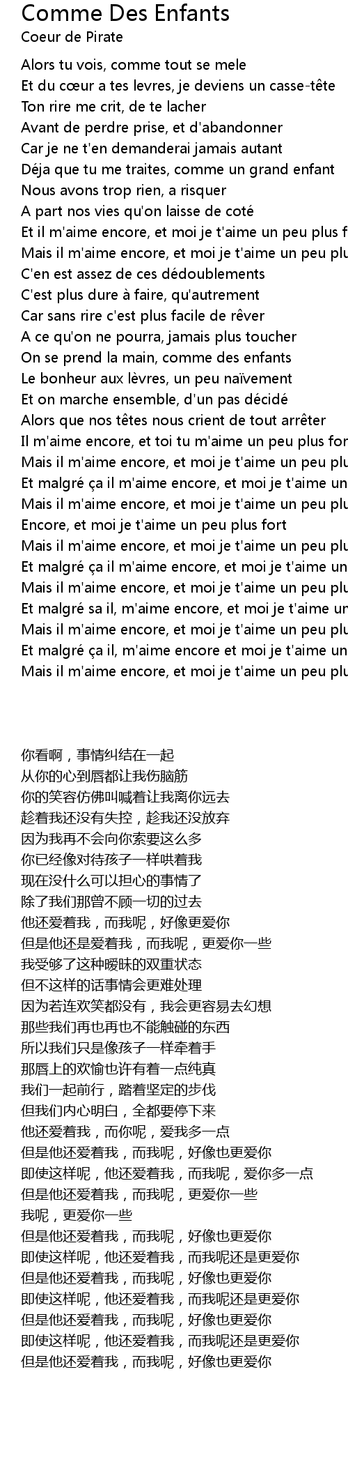 | [02:02.27] | Et malgré a il m' aime encore, et moi je t' aime un peu plus fort |