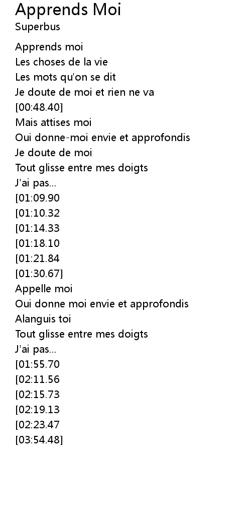 | [00:55.60] | Oui donne-moi envie et approfondis |