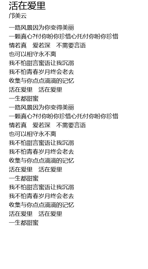 | [03:26.84] | huó zài ài lǐ huó zài ài lǐ |