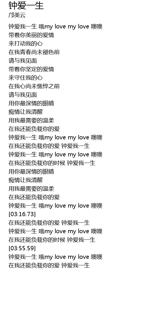 | [03:10.73] | 钟爱我一生 哦my love my love 噢噢 |