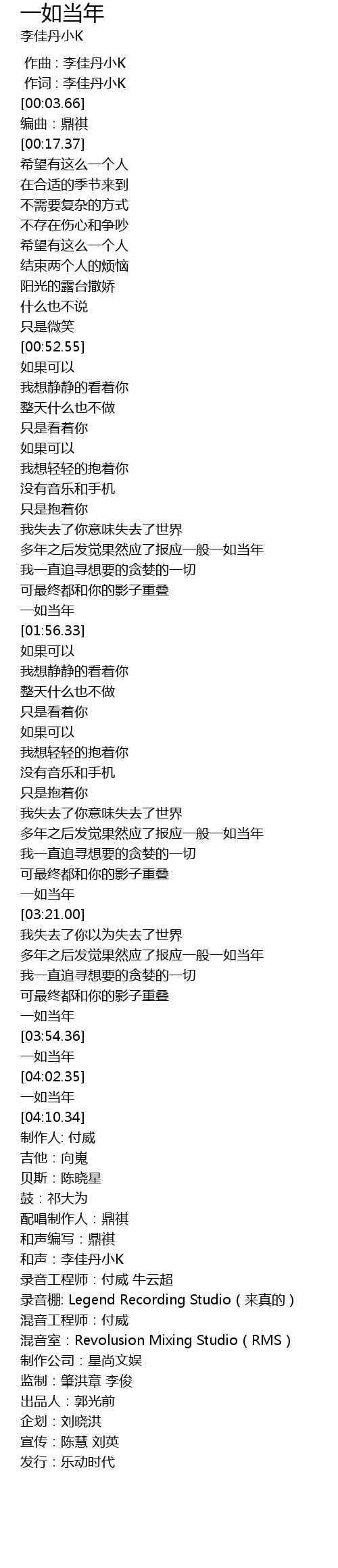 | [00:01.000] | zuò cí : lǐ jiā dān xiǎo K |
