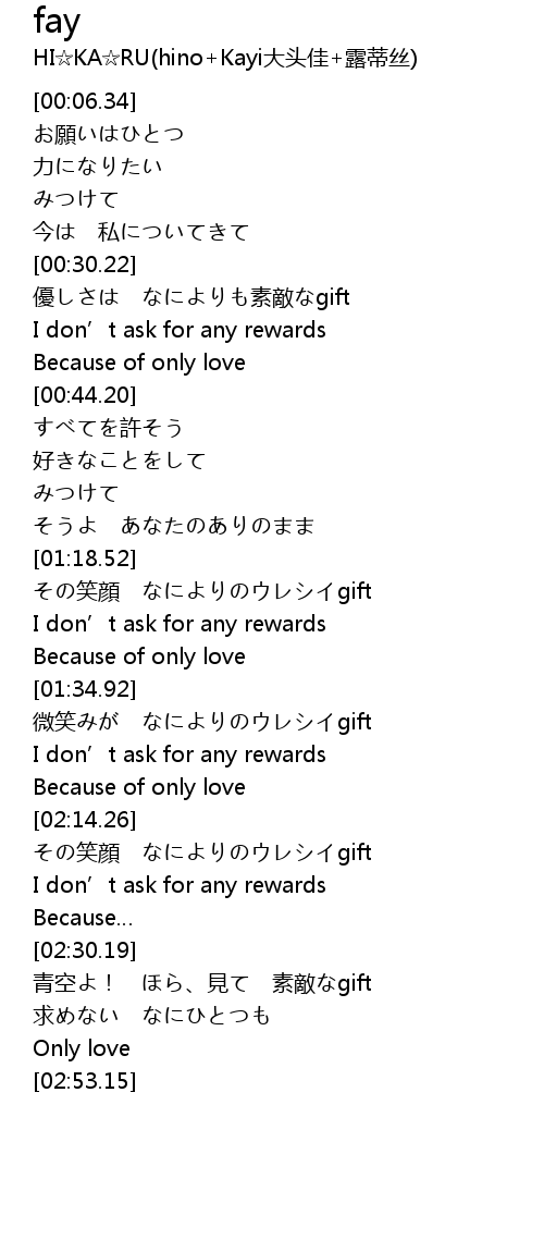 | [02:30.50] | 青空よ! ほら、見て 素敵なgift |