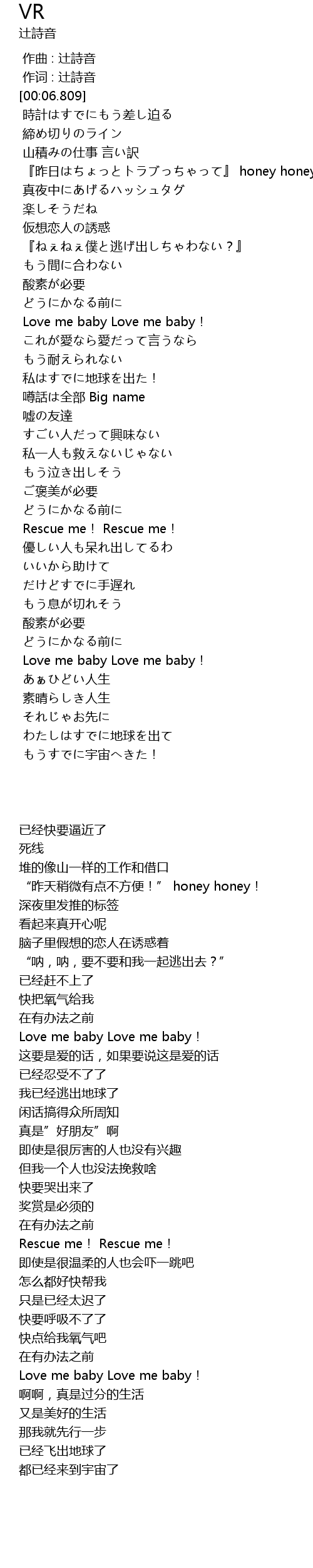 | [01:08.090] | Love me baby Love me baby! |