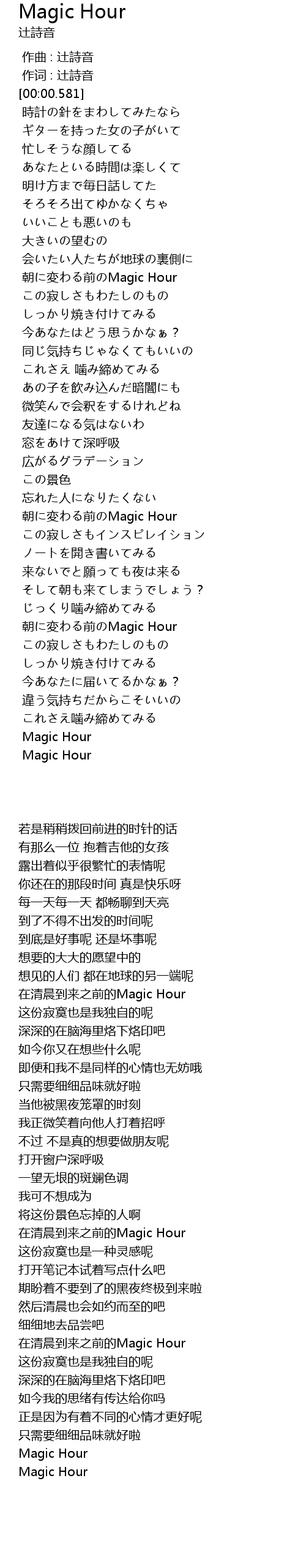 | [01:24.491] | 朝に変わる前のMagic Hour |