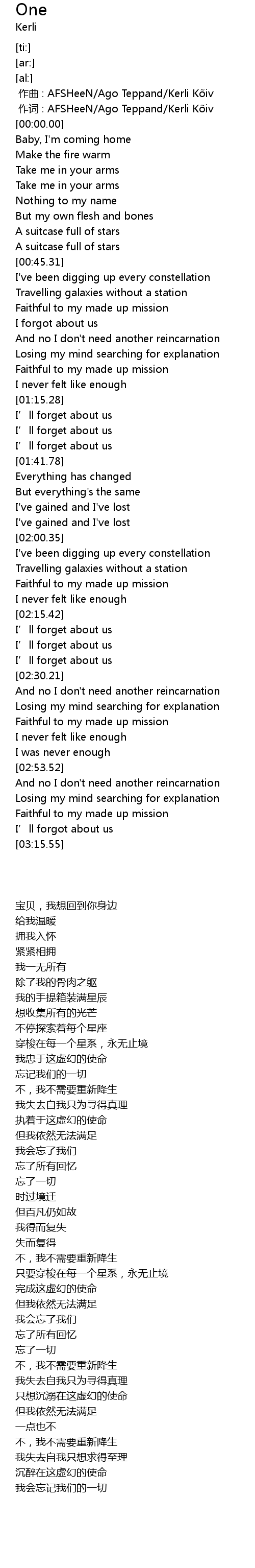 | [00:00.000] | 作词 : AFSHeeN/Ago Teppand/Kerli Kõiv |