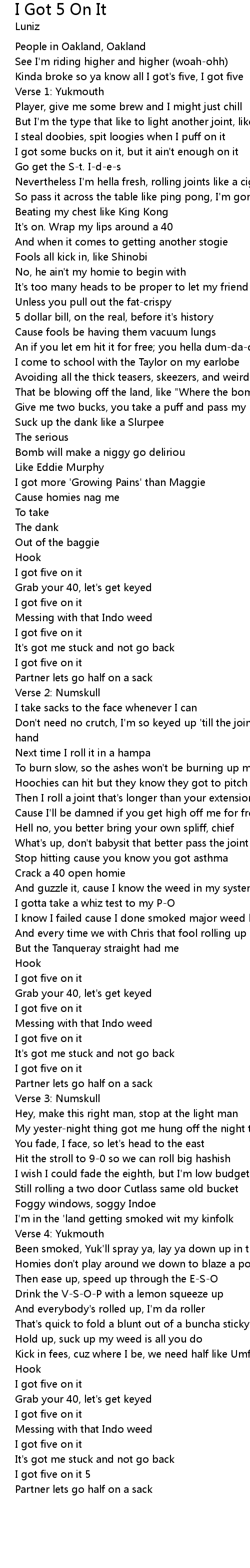 [00:16.30] Kinda broke so ya know all I got's five, I got five
