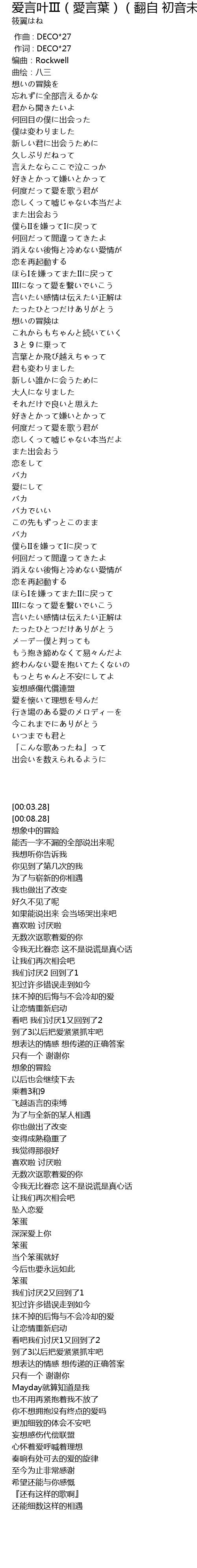 | [00:00.000] | zuò qǔ : DECO 27 |