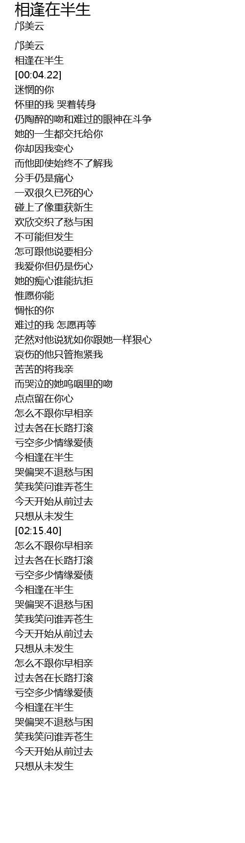 | [00:02.05] | xiāng féng zài bàn shēng |