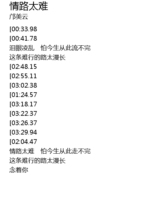 | [02:33.63] | 情路太难 怕今生从此走不完 |