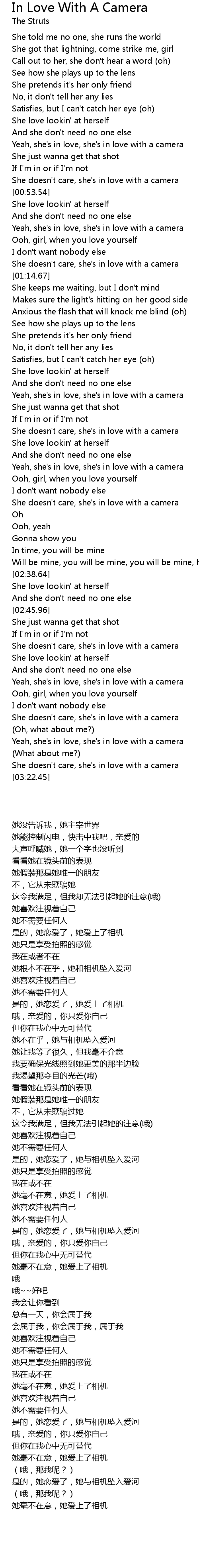 Yeah, she's in love, she's in love with a camera |