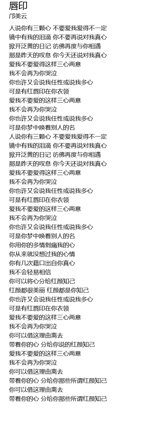 | [00:29.17] | 人说你有三颗心 不要爱我爱得不一定 |