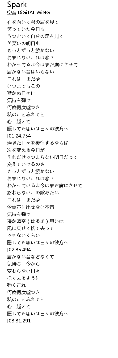| [03:24.108] | 隠してた思いは日々の彼方へ |