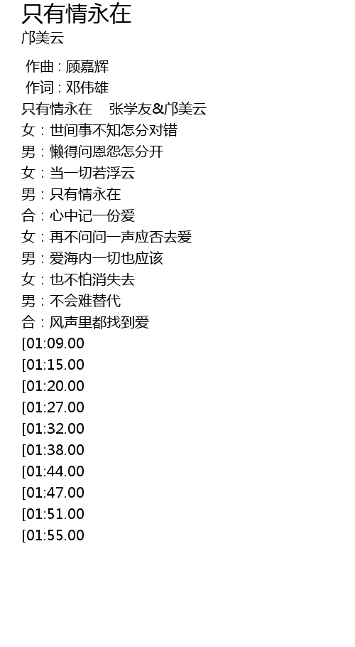 | [00:00.00] | 只有情永在 张学友&邝美云 |