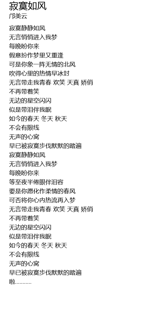 | [00:23.23] | jì mò jìng jìng rú fēng |
