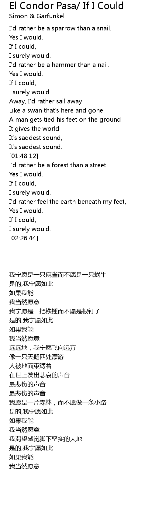 El Condor Pasa/ If I Could Lyrics