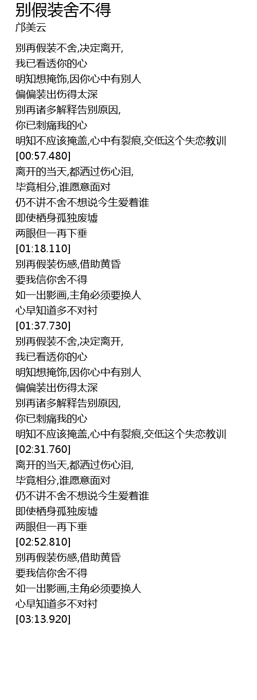 | [00:20.550] | 别再假装不舍,决定离开, |
