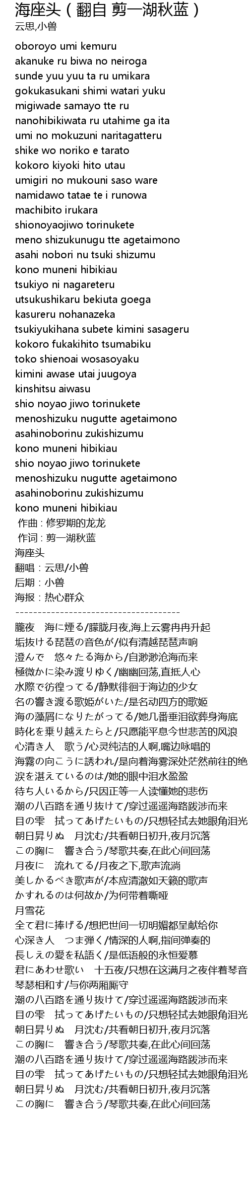 | [00:18.94] | 翻唱:云思/小兽 |