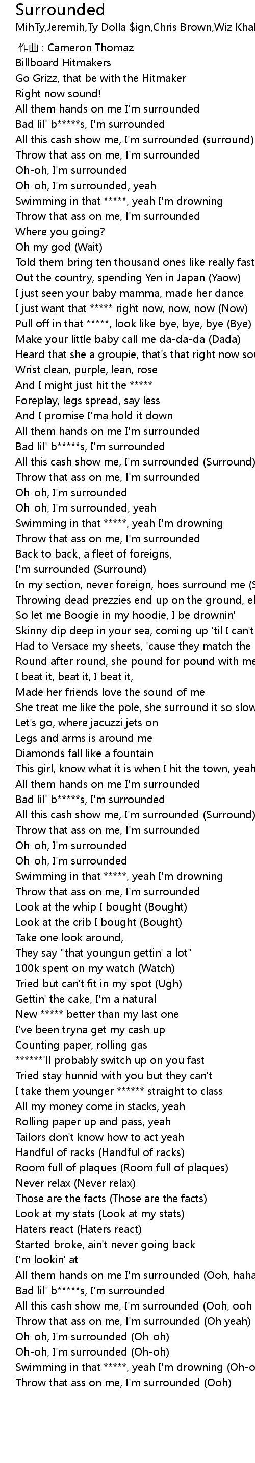 | [02:34.58] | All this cash show me, I'm surrounded (Surround) |