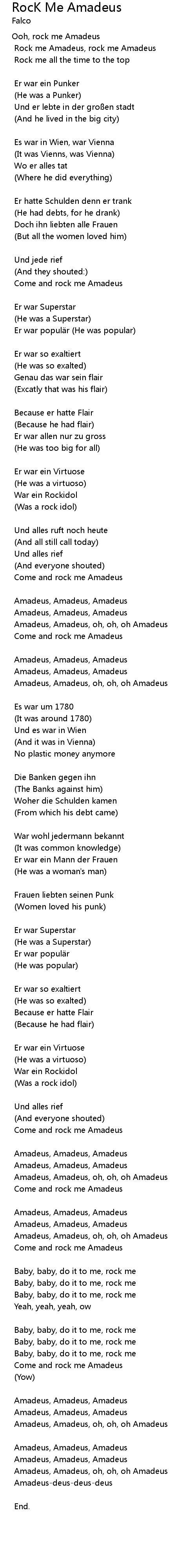 | Amadeus, Amadeus, oh, oh, oh Amadeus | |