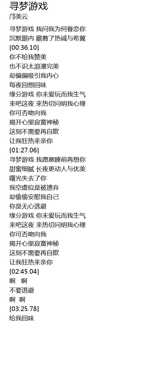 | [00:21.86] | 寻梦游戏 我问我为何眷恋你 |