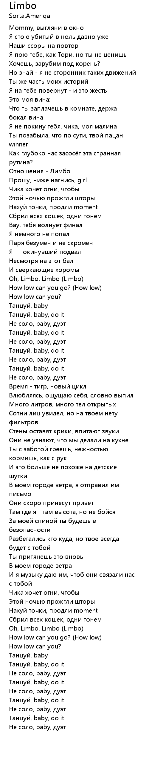 Oh, Limbo, Limbo (Limbo) |