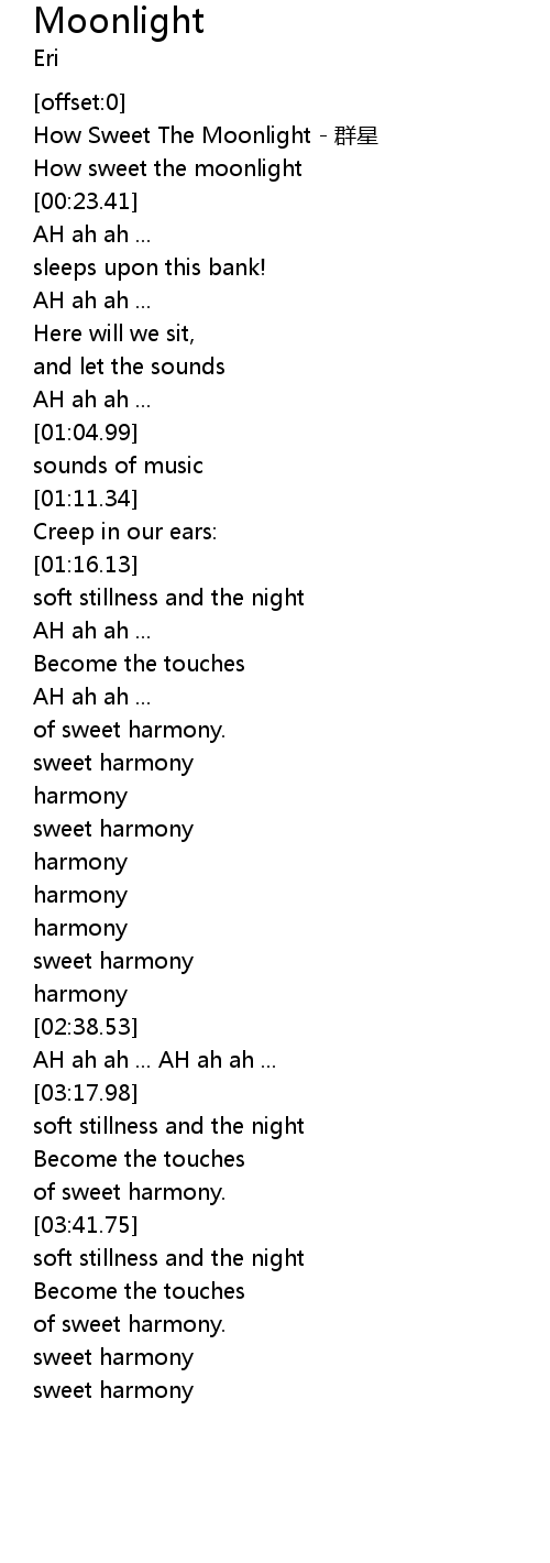 | [00:15.99] | How sweet the moonlight |