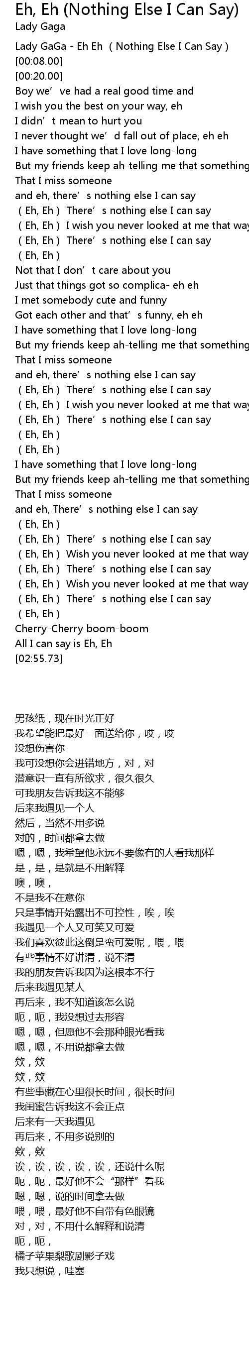 | [00:02.00] | Lady GaGa - Eh Eh (Nothing Else I Can Say) |