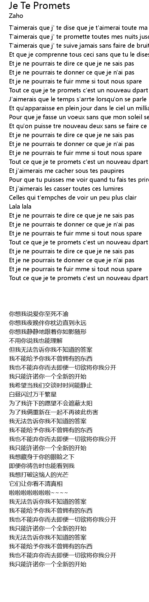 T'aimerais que j' te promette toutes mes nuits jusqu' l'infini |