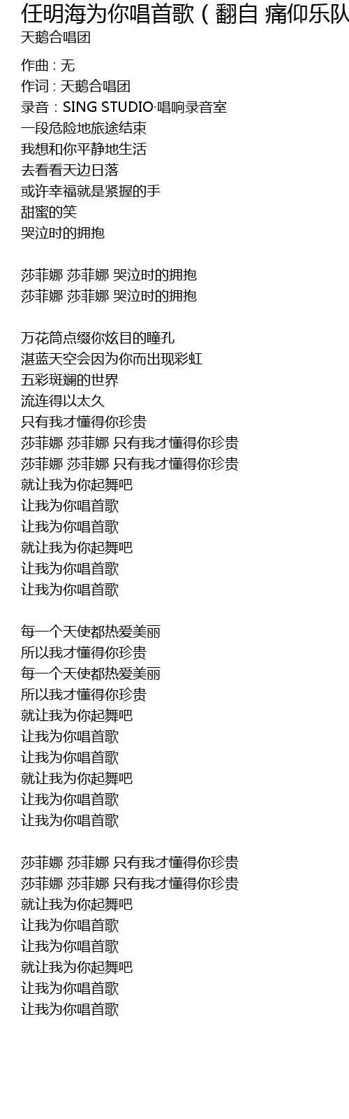 | Song | 任明海为你唱首歌(翻自 痛仰乐队) |