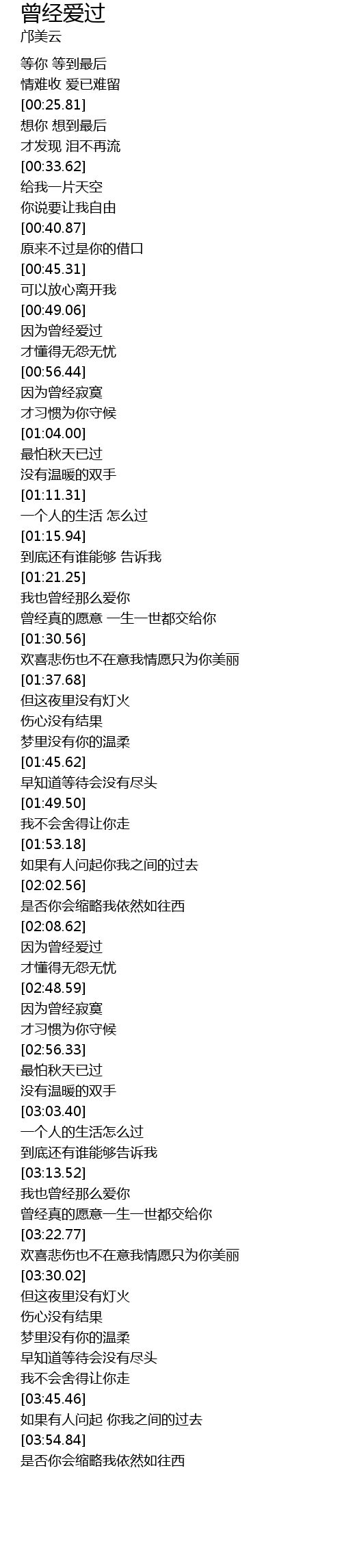 | [01:23.20] | wǒ yě zēng jīng nà me ài nǐ |