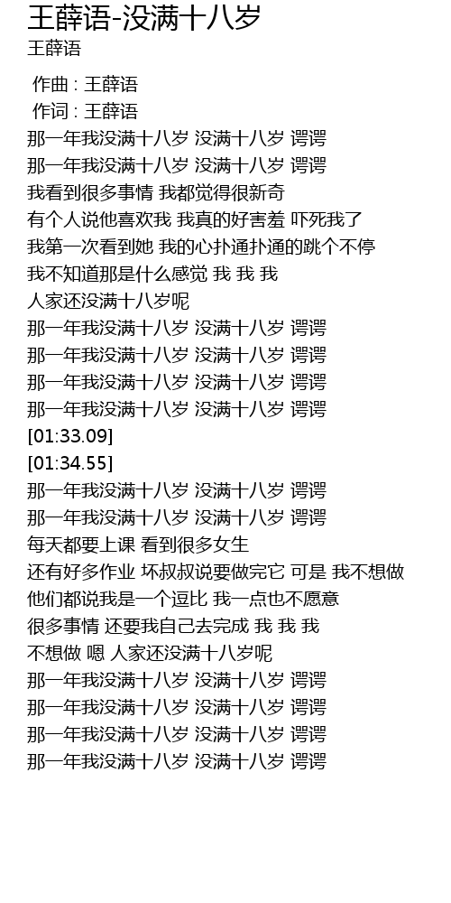 | [01:17.57] | 那一年我没满十八岁 没满十八岁 谔谔 |
