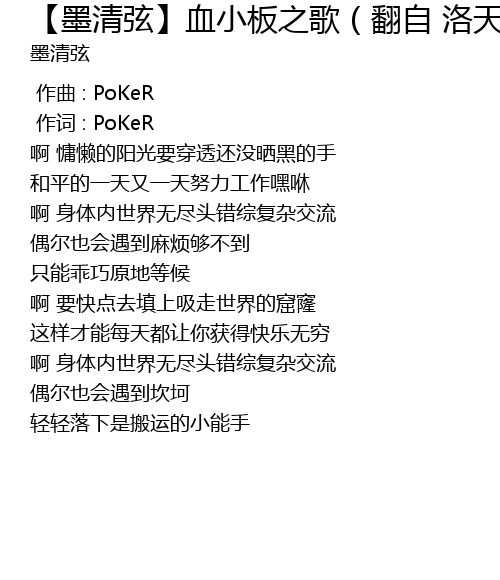 | Song | 【墨清弦】血小板之歌(翻自 洛天依)(翻自 PoKeR) |