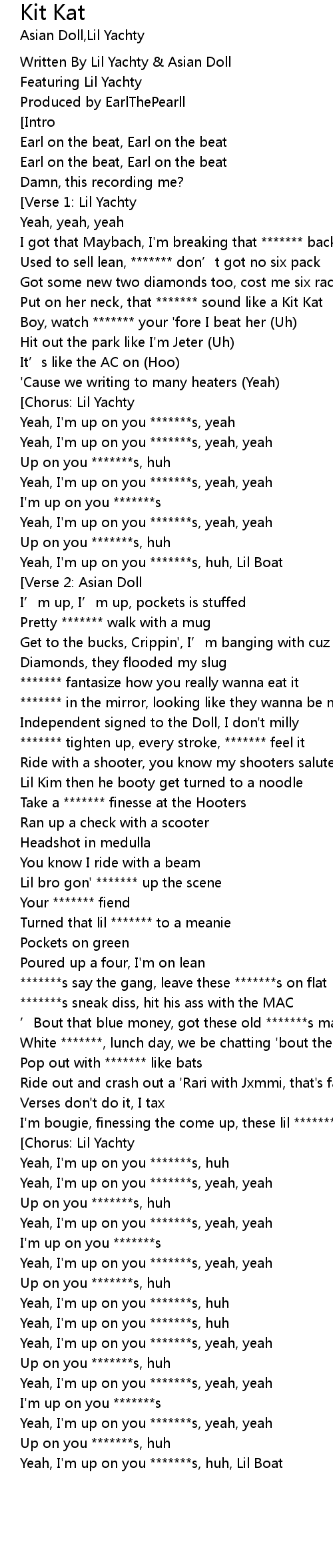 | [00:41.984] | Yeah, I'm up on you *******s, huh, Lil Boat |