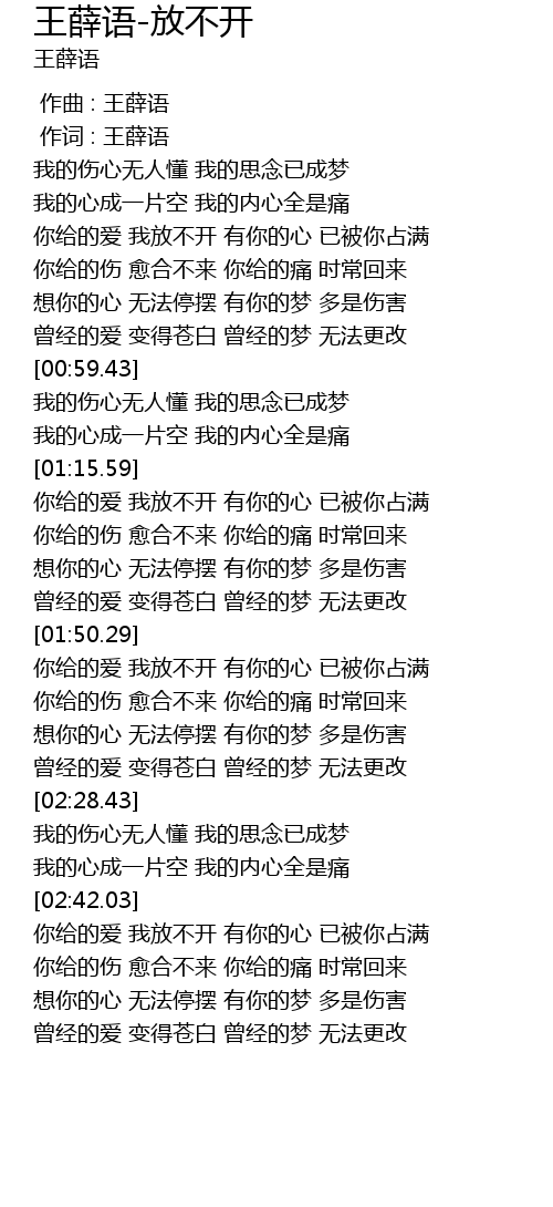 | [02:59.64] | 想你的心 无法停摆 有你的梦 多是伤害 |
