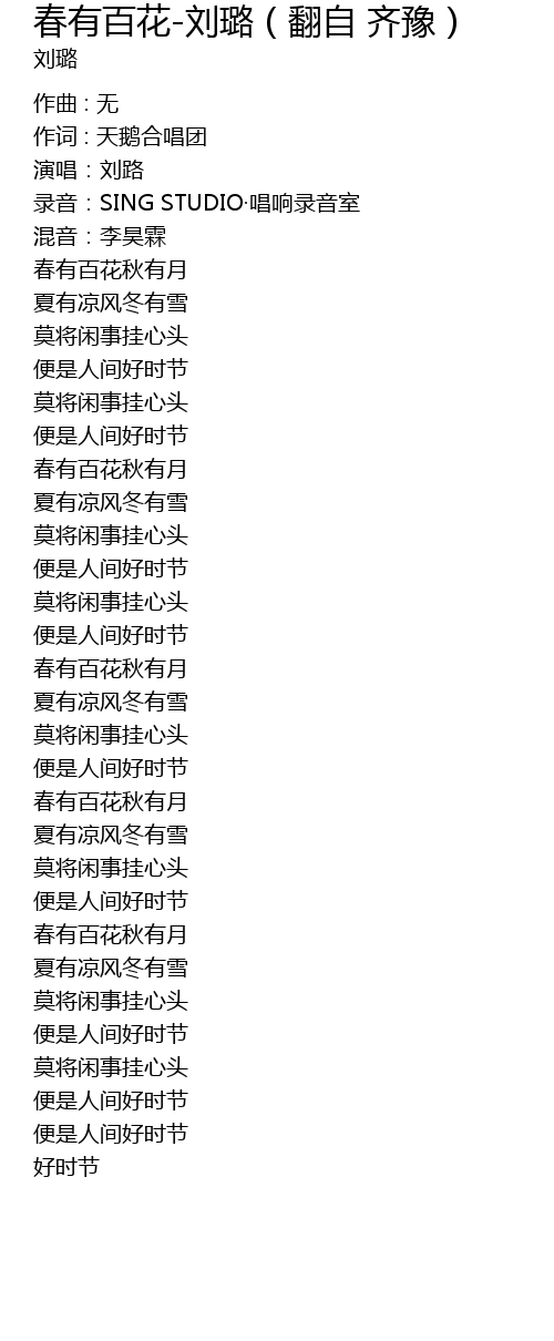 | Song | 春有百花-刘璐(翻自 齐豫) |