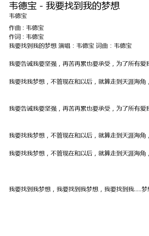| wǒ yào zhǎo dào wǒ de mèng xiǎng yǎn chàng: wéi dé bǎo cí qǔ: wéi dé bǎo | |
