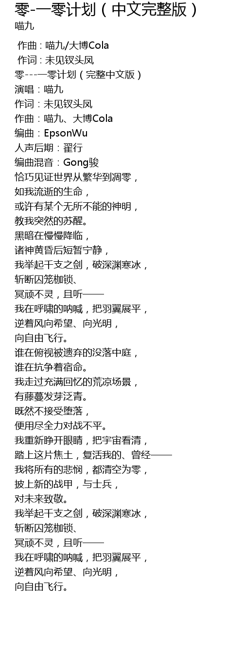 | [00:04.80] | 零---一零计划(完整中文版) |