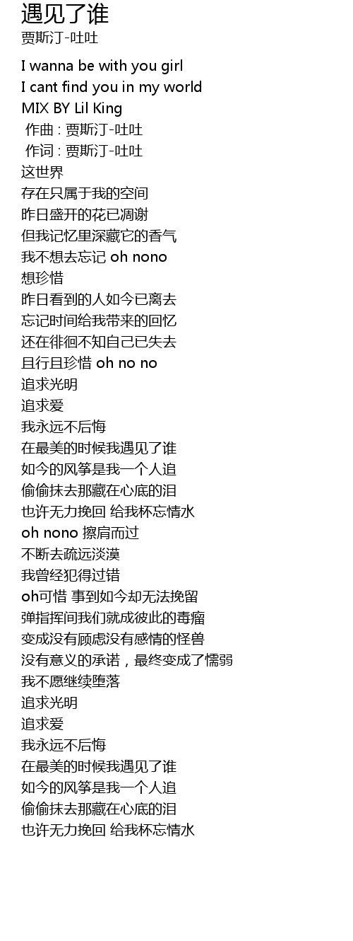 | [00:01.000] | 作词 : 贾斯汀-吐吐 |
